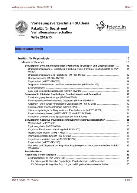 Vorlesungsverzeichnis Fsu Jena Friedolin