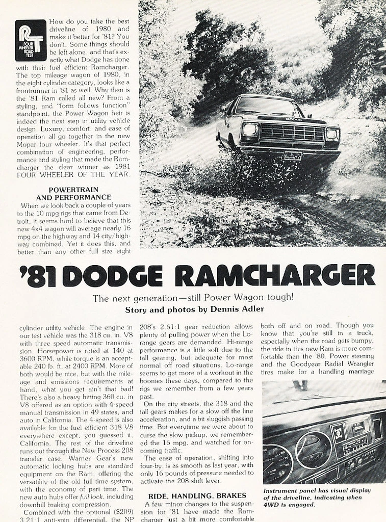 1981 Dodge Ramcharger Road Test Classic Truck Original Print Article J107 Ebay