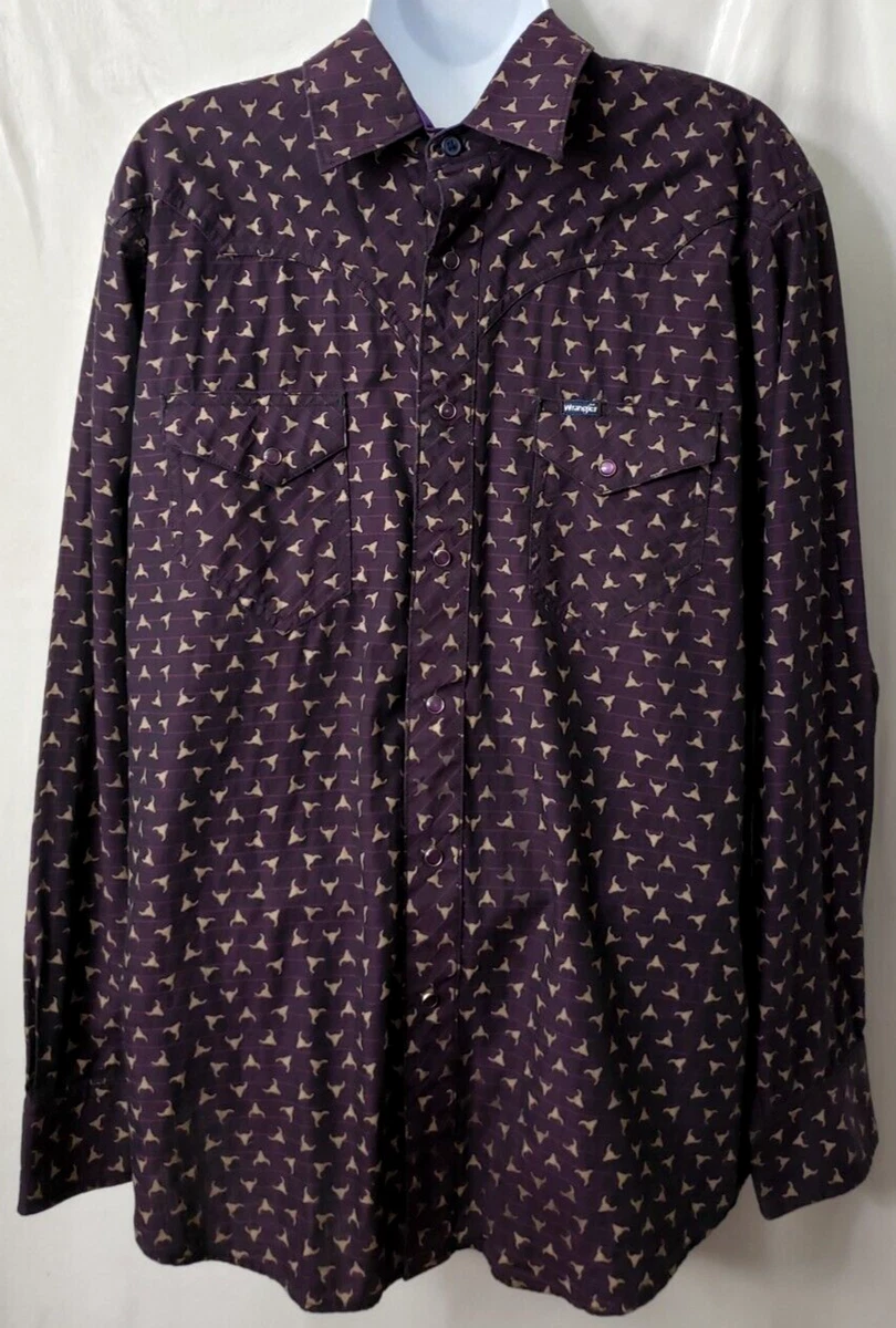 Wrangler Retro Pearl Snap Shirt L Purple Long Horn Bull Horse Ride Rodeo Pockets Ebay